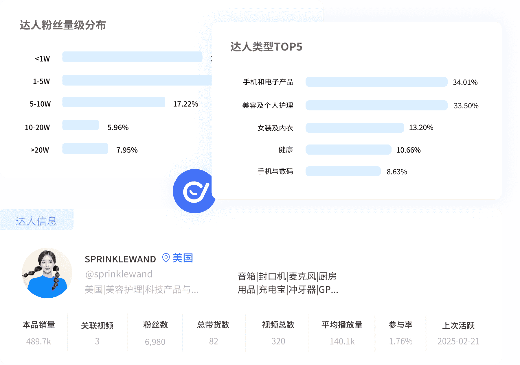 高效尋找并聯系達人,預判合作風險,追蹤效果,沉淀達人池,閉環管理,多次合作。
